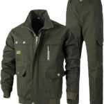 / 作業着 作業服 上下セット 長袖シャツ カーゴパンツ 綿混 撥水 防汚 吸汗 速乾 軽量 薄手 通気性 トーマセンイ ジャンパー ズボン 庭 畑 工場 ガーデニング 土木 工事 現場 服 服装 165~190CM (180,ぐんりょく)