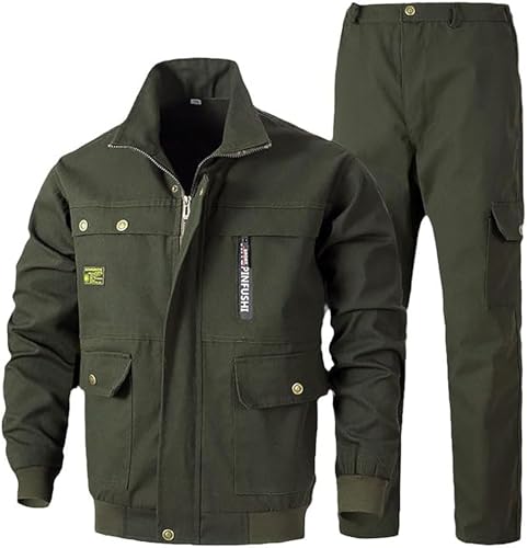 作業着 作業服 上下セット 長袖シャツ カーゴパンツ 綿混 撥水 防汚 吸汗 速乾 軽量 薄手 通気性 トーマセンイ ジャンパー ズボン 庭 畑 工場 ガーデニング 土木 工事 現場 服 服装 165~190CM (180,ぐんりょく)