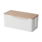 BHVXWの木製カバー電源ストリップケース。充電器やソケットを整理できるデスクトップオーガナイザー。ホワイト、サイズは31cm。