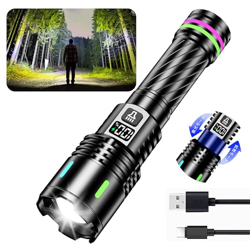 2025アップグレード版の強力懐中電灯。2000mAhの18650バッテリー、超高輝度、Type-C充電式。防水・調光・ズーム機能搭載。照射距離最大500m、残量表示機能あり。キャンプや防災に最適。