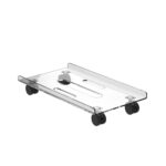 キャスター付きの頑丈なPCスタンド。アクリル製でデスクトップに最適、足元の収納にも便利。移動しやすい4個のキャスター付き。
