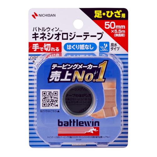 ニチバン バトルウィン セラポアテープFX(キネシオロジーテープ)は、50mm×5.5m(伸長時)のサイズで、筋肉や関節のサポート、リハビリテーションに最適です。伸縮性があり、皮膚にも優しく、様々なスポーツシーンで活躍します。