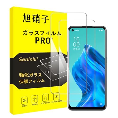 OPPO Reno5 A 用のガラスフィルム(2枚セット)。国産旭硝子素材を使用し、硬度9Hで耐衝撃性や飛散防止機能付き。気泡ゼロで自動吸着、指紋防止、ラウンドエッジ加工、薄さ0.26mmで3D Touch対応。