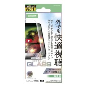 エレコム iPhone 17 ガラスフィルム 光沢 強化ガラス 硬度10H ダイヤモンドコート 動画が映える AR加工 衝撃吸収 指紋がつかない 気泡が入らない 【貼り付けツール付き】 PM-A25AFLGARD