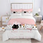 シングルサイズの猫デザインの布団カバー3点セットです。白を基調としたかわいいデザインで、お部屋を明るく演出。洗濯機で洗えるので、お手入れも簡単です。