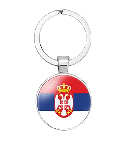 セルビア国旗デザインのキーチェーン。ステンレススチールと象嵌ガラス素材で作られ、男女問わずプレゼントにも最適。サイズはOne Sizeで、頑丈で耐久性があります。