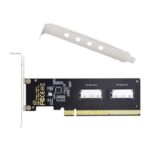 PCI-Express 4.0対応のデュアルOculink SFF-8612/SFF-8611アダプター。取り外し可能な16xポートで、SSDやグラフィックカードに最適。