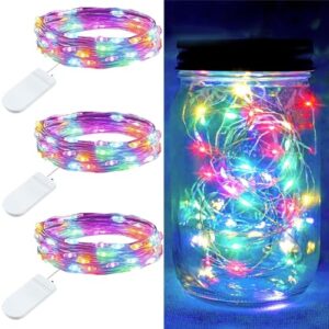 LIKENNY LEDイルミネーションライト3個セット 3m 30灯 室内 屋外 ストリングライト 電池式 銅線 防水 ガーデンライト 誕生日 結婚式 ハロウィン クリスマス パーティー キャンプ装飾 小道具 舞台 フォトブース お祝い イベント 撮影 店舗装飾用 LED電球(カラフル)