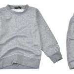 シスキーのスウェット上下セットアップ、キッズ用。男女兼用、150cm。秋冬向けの長ズボン付き。カジュアルなデザインで、ダンスやパジャマとしても最適。無地のグレーが特徴。