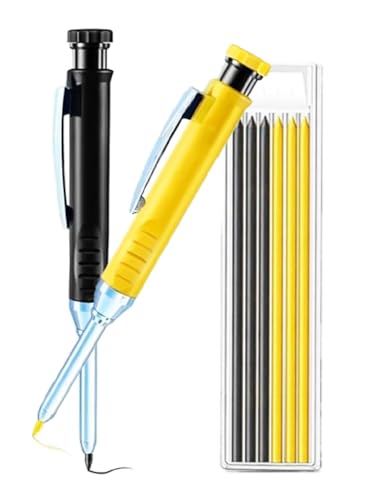 S.fields.incのすみつけシャープペンシルは、建築用の2本セットで、替芯が2.8mmの太さです。墨付けや木工、大工用に適しており、カラーは黄と黒です。