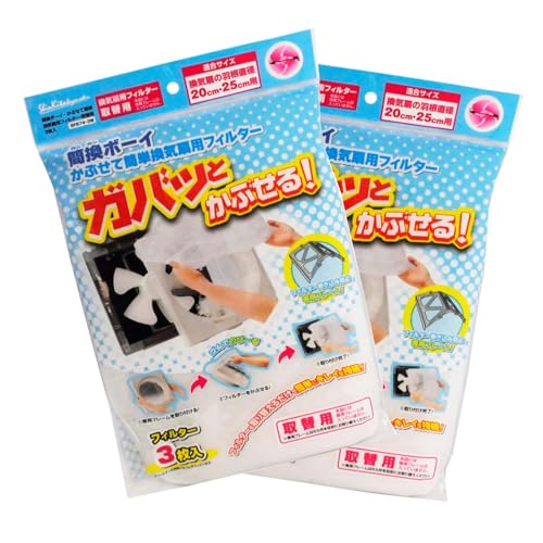 新北九州工業の換気扇フィルターは、羽根直径20cm・25cmに対応し、3枚入×2個セット。簡単に交換できる設計で、日本製。さらに、不織布ふきんが付属しています。