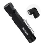 Philipsの小型フラッシュライトSFL5806BKは1000ルーメンの高輝度で、Type-C充電式。90°回転、18650電池交換可、クリップとマグネット付きで便利です。低電量提示機能も搭載。