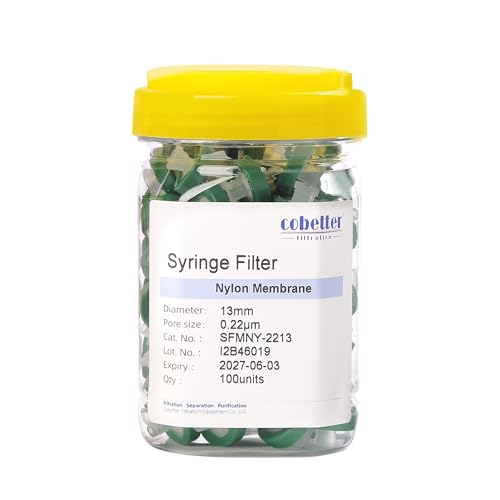 COBETTER 100個 Nylon シリンジフィルターは、孔径0.22μm、直径13mmの親水性フィルターです。実験室でのろ過に最適で、研究開発用品として使用されます。