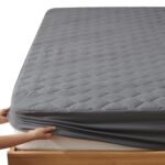 クモリのパッド一体型ボックスシーツ。洗いざらしで高吸水速乾、敷きパッドとベッドシーツの2役。着脱が簡単で、柔らかくクッション性があり、耐久性抜群。お手入れも楽で、オールシーズン対応。サイズはダブル・140X200cm・ダークグレー。