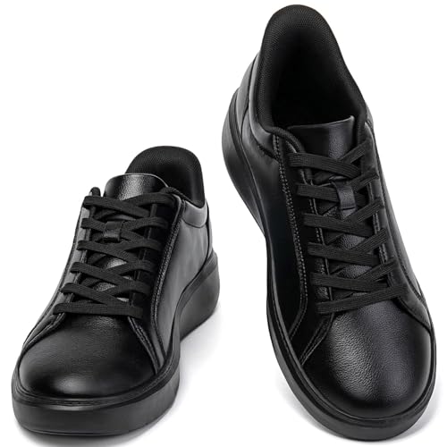 SOARHOPEの防水スニーカーは、理学療法士推薦で立ったまま履けるデザイン。軽量で快適なビジネス用、厚底のフルブラック。通勤や立ち仕事に最適な革製ウォーキングシューズ。サイズ24.0cm。