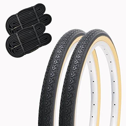 SHINKO(シンコー)自転車タイヤ20インチ、チューブセットのペア巻き。サイズは20×1.75 HE、色はブラック/ベージュ。耐久性と安定性を兼ね備えた商品。