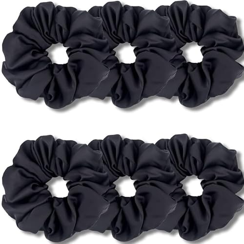 Shidaraのラグジュアリーシュシュ6個セット。太い髪にも対応した特大XLサイズ(6インチ)、シルクより柔らかいプレミアムサテン素材。ブラックカラーで、伸縮性のあるヘアバンドアクセサリーです。