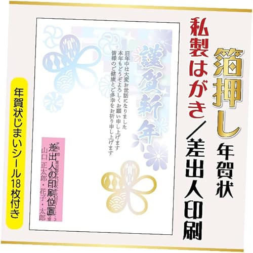 箔押し年賀状 私製はがき【20枚】文章印刷済み 年賀状じまいシール付 差出人印刷込み(デザイン:hakuoshi02)印刷する差出人住所はご注文時の「お届け先住所」+「氏名」を印刷いたします。