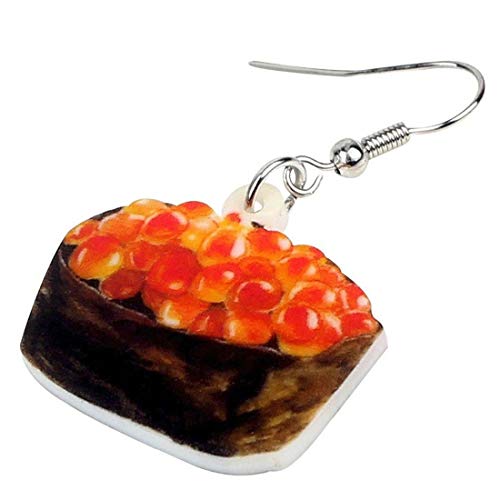 リアルいくら軍艦のステンレス製フックピアスです。片耳用のシングルピアスとして人気で、和風でユニークなデザイン。食玩感覚で楽しめる日本の寿司モチーフ、シルバー色で20G。