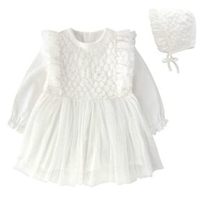 [Reegoo Peter] ベビー服 ドレス チュールスカート 長袖 ワンピース 女の子 春 秋 赤ちゃんフリル 出産祝い ホワイト 59 0-3ヶ月