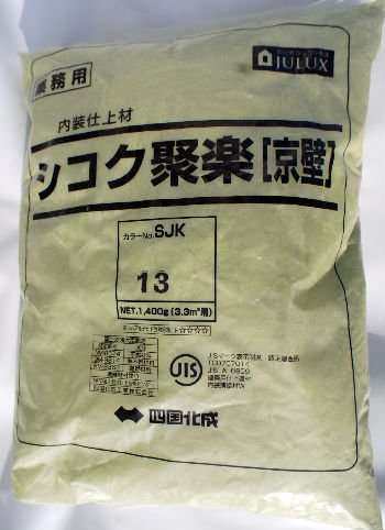 四国化成のシコク聚楽[京壁](1.4kg、カラー番号13)は、自然素材を使用した壁材で、調湿性が高く、健康的な住環境を提供します。施工が容易で、和風の空間にもマッチします。