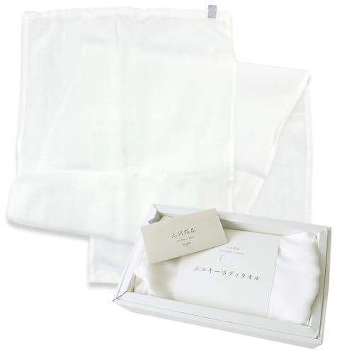 純日本製のシルクボディタオルは、100%絹を使用しており、肌に優しい使い心地が特徴です。垢すり効果で、角質をやさしく除去し、なめらかな肌に導きます。箱入りで贈り物にも最適です。