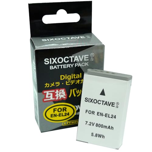 SIXOCTAVE EN-EL24は、ニコン1 J5対応の互換バッテリーです。純正充電器で充電可能で、残量表示機能もあり、純正品同様に使用できます。
