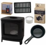 ちいさなまきストーブランプ ミニフライパン付き 4点セットは、コンパクトなデザインで持ち運びに便利。災害時やアウトドアに最適。ミニフライパンが付属しており、手軽に調理が楽しめます。