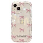 NICEHOLI iPhone 16Pro 用 ケース ピンクリボン ブレスレット付き 韓国 透明 Caidu クリーム柄 シリコンソフトケース 可愛くてシンプル 薄型 おしゃれ 携帯電話ケース iPhone 16Pro-A 高価買取中