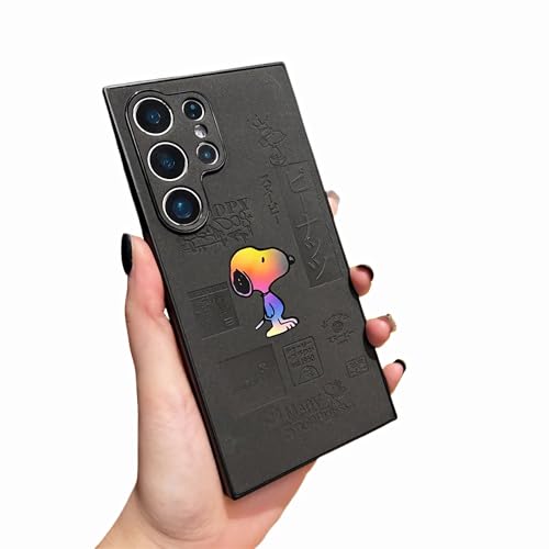NICEHOLI Samsung Galaxy S22ultra 用 ケース 和風レーザースヌーピーエンボス加工保護ケース PUレザー スヌーピー保護ケース サムスン携帯電話ケース 模造革 耐衝撃 リストストラップ付き 人気 かわいい レザー キャラクター 犬柄 スマートフォンケース 動物 携帯電話ケース(S22ultra-black) 高価買取中