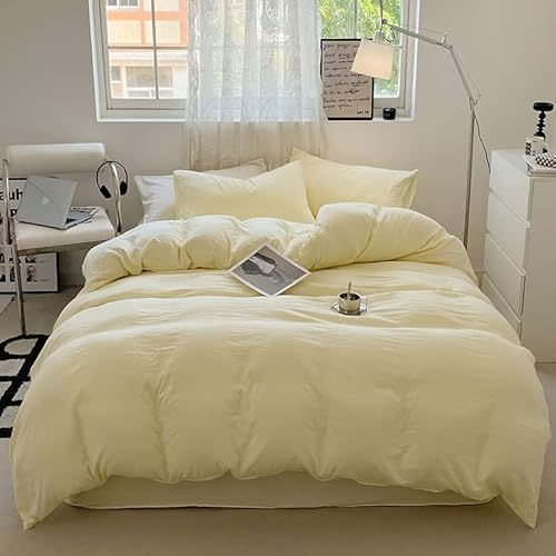 Zhiyuan リバーシブルしわテクスチャ布団カバーベッドシーツ枕カバーセット、シングル、ペールイエローの高価買取ITEM
