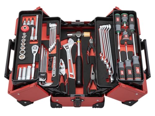 京都機械工具(KTC)の9.5sq.両開きメタルケース工具セットSK3562WZRは、56点の豊富な工具が含まれており、耐久性に優れた赤いメタルケースに収納されています。持ち運びや保管に便利で、作業に最適なセットです。