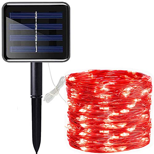 SKD イルミネーションライト ソーラーライト 大型パネル 最大15時間点灯 防水 200LED 20m 日本語マニュアル付(レッド)の高価買取