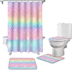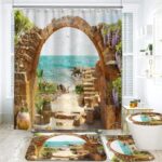 シャワーカーテン4点セットは防水、防カビ仕様で、北欧風のデザインが特徴です。便座クッション、滑り止めカーペット、U字型輪郭クッションが含まれ、浴室を美しく飾ります。サイズ150*180cmで、速乾性も備えています。