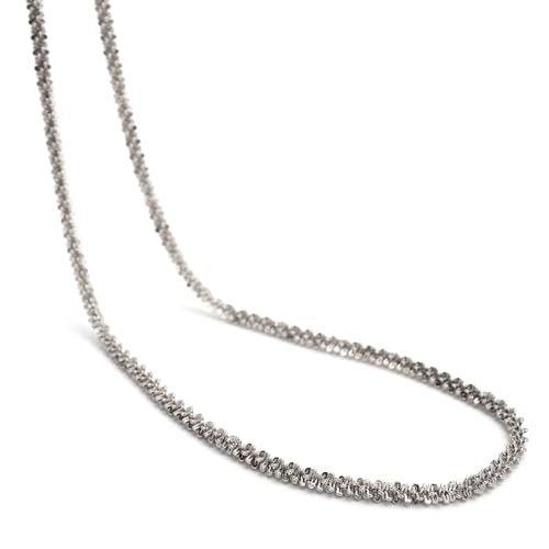 ステンレス製のスクロールチェーンネックレス。シルバーとゴールドの2色展開で、キラキラとした輝きが魅力。ロープチェーンとツイストデザインでお洒落に映え、金属アレルギーにも対応しています。