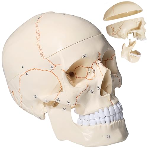 AVASMODELの頭蓋骨モデルは、55のラベル付き構造を持ち、等身大の解剖学モデルです。解剖学の学生向けに、ダウンロード可能なPDFガイド付きで提供されます。