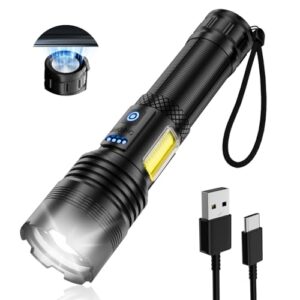 ledライト 懐中電灯 強力 【XHP160・Type-C充電式&電池式】 5800mAh 26650バッテリー付 高輝度 フラッシュライト 防災 ハンディライト ズーム調整 COBライト IPX6防水 マグライト 磁石 led懐中電灯 単4電池適用 停電対策/キャンプ/地震/防災/非常用 (ブラック)