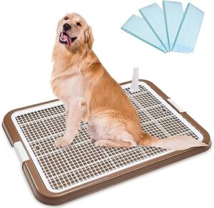 ペット 犬用トイレ大型犬 トイレワイドトレーニングマットフレームと犬用トレイボックス屋内/屋外サイズ (L, グレー)