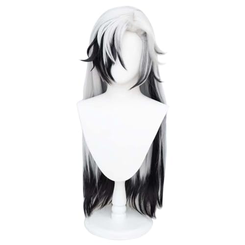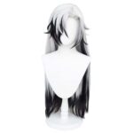 ホワイトとブラックのロングフルウィッグです。耐熱素材で、ゲームやコスプレ、ハロウィン、イベントに最適。ウィッグネット付きで、舞台演出や仮装にもお使い頂けます。
