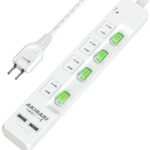 Siblingの1m電源タップは、1400W、6個口のコンセントと2つのUSB-Aポート(3.4A)を備えています。個別スイッチで節電、180°スイングプラグ、ほこり防止機能、雷ガード付き。PSE認証済みで、オフィスや自宅に最適です。