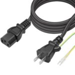 電源ケーブル 3ピンソケット⇔2ピンプラグ 180cm ブラック。アース線付きでトラッキング対策。PC、モニター、プロジェクター等に最適。耐久性と携帯性に優れた1.8mケーブル2本セット。