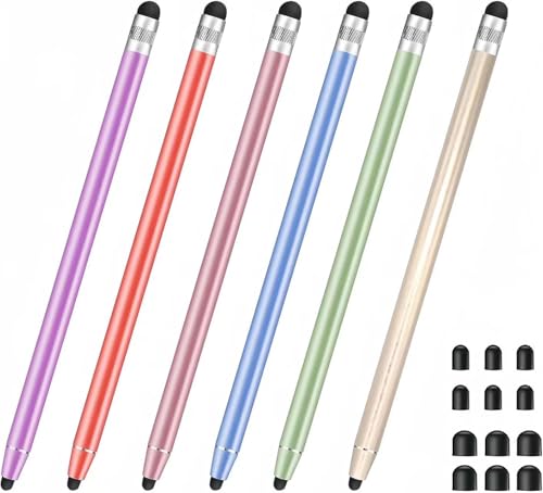 Smozerのスタイラスペン6本パックは、2イン1デザインで高感度。iPad、iPhone、Androidデバイスに対応。細字付きで、色はパープル、クリムゾン、ピンク、ブルー、グリーン、ゴールドの6色。