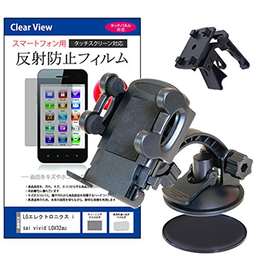 LGエレクトロニクス isai vivid LGV32用の車載ホルダーと反射防止液晶保護フィルムのセットです。エアコン吹出口やダッシュボードマウントに対応した互換品で、5.5インチの高解像度ディスプレイを保護します。