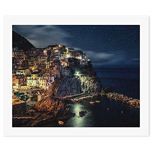 マナローラの夜景をテーマにした数字油絵キット。47x57cmのキャンバスで、簡単に手塗りが楽しめます。大人や子供向けのDIY用装飾品として最適。