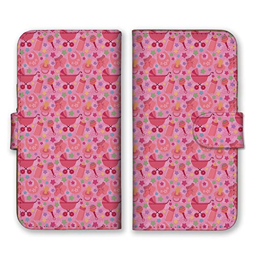 らくらくスマートフォン F-42A用の手帳型ケース。星柄の赤紫色で、ベビーカーに似たデザイン。F-42Aモデル専用のスマホカバーです。