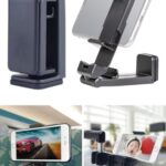 ポータブルなスマホホルダー。現役モデル監修で、飛行機や新幹線に最適。折りたたみ式でポケットサイズ、360度回転可能。コンパクトで旅行や出張に便利なブラックデザイン。