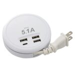 オーム電機のUSB ACチャージャー(型番SMP-U3C51E3-W)は、TypeAポート×3とTypeCポートを備えた充電器です。45cmコードリール付きで、配線がスッキリします。電源タップとしても利用可能。