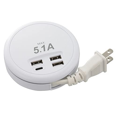オーム電機 USB ACチャージャー TypeA×3+TypeC 45cm コード巻取 コードリール AC充電器 電源タップ SMP-U3C51E3-W 00-1228 OHMの製品情報