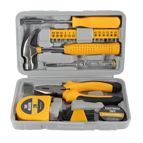 STEELMIGHTの家庭用24点DIY工具セットは、初心者向けに設計されたコンパクトな工具箱。ハンマー、ドライバービット、メジャー、コンビネーションプライヤーなどが含まれ、メンテナンスや修理、家具の組み立てに最適です。