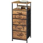 YeTomの洋服タンスは、6段5杯の引き出し付きで大容量の収納力を誇ります。スリムなデザインで脱衣所にもぴったり。サイズは40*30*93.5cmで、天板付きのオシャレなピンテージ風です。
